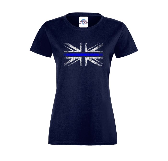 Womens Distressed Thin Blue Line Flag T-Shirt